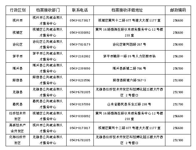 毕业时未落实用人单位,且报到证派至“滨州市(含各县、市、区)人力资源和社会保障局”的滨州籍非师范类高校毕业生的档案。