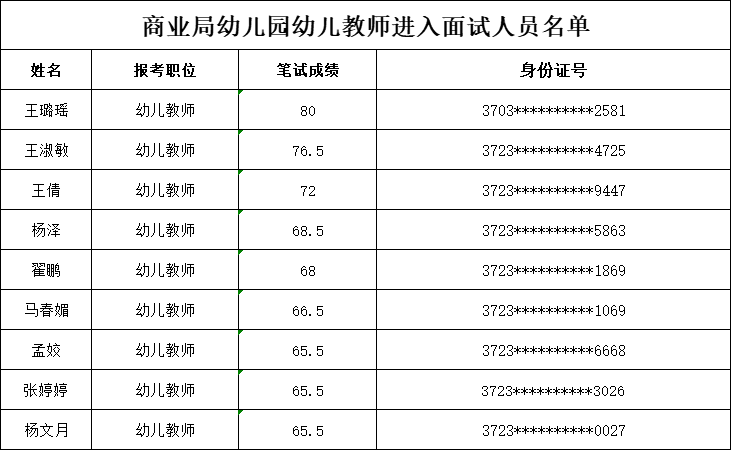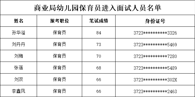 2023年邹平市商业局幼儿园进入面试人员公示